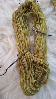 Seuraavissa kuvissa on esillä värjäämäni langat, lyhyellä selostuksella, miten olen lankaa käsitellyt: